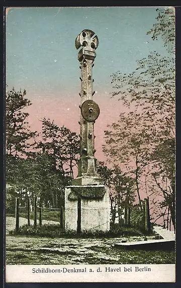 AK Berlin-Grunewald, Schildhorn a. d. Havel, Blick auf das Schildhorn-Denkmal