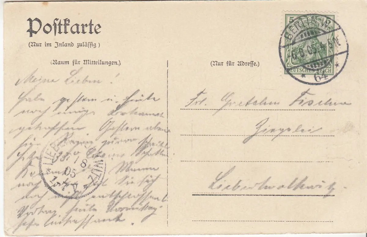 L. Saalfeld, 1905. Karte, 14,0 x 9,0 cm
