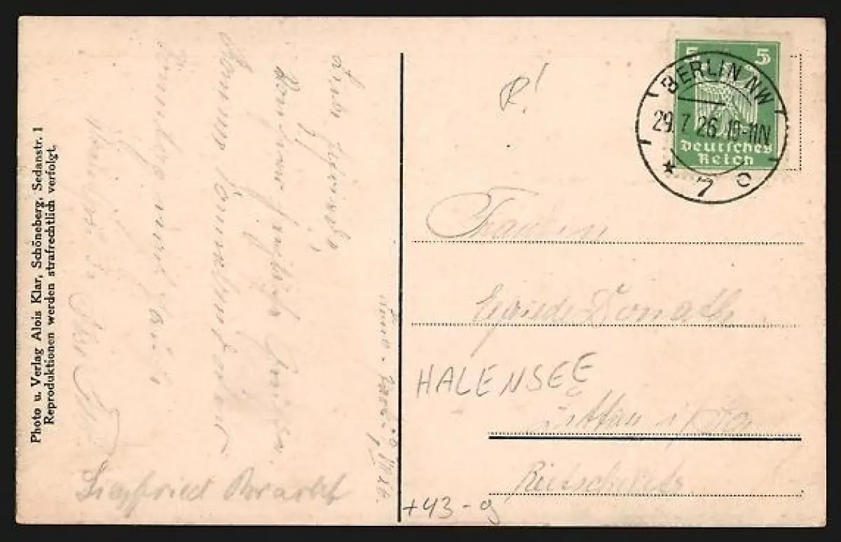 alte Ansichtskarte, gelaufen 1926, Eckknick rechts oben, guter Zustand