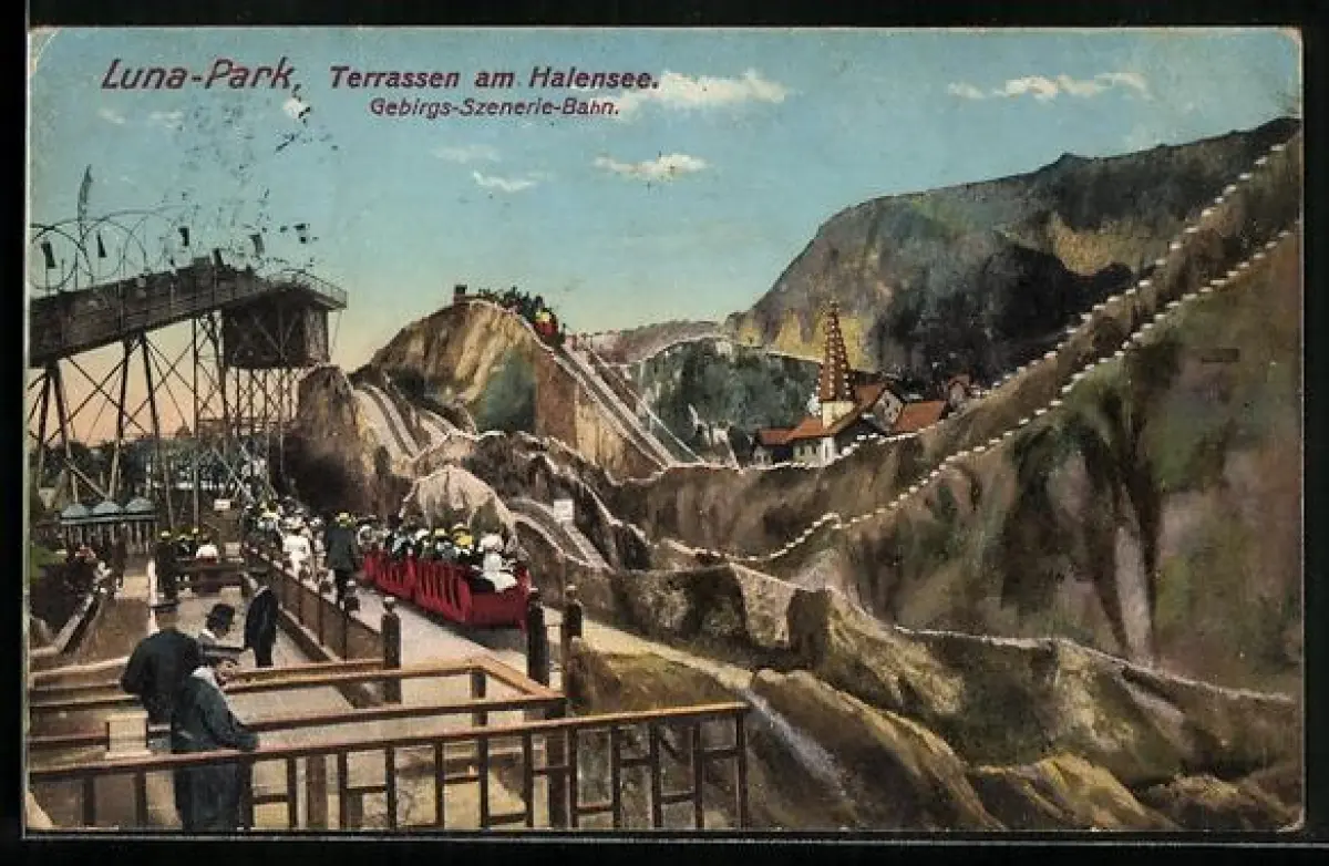AK Berlin-Halensee, Luna-Park mit Gebirgsszenerie-Bahn
