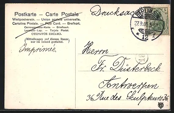 alte Ansichtskarte, gelaufen 1905, Stempelspur, guter Zustand