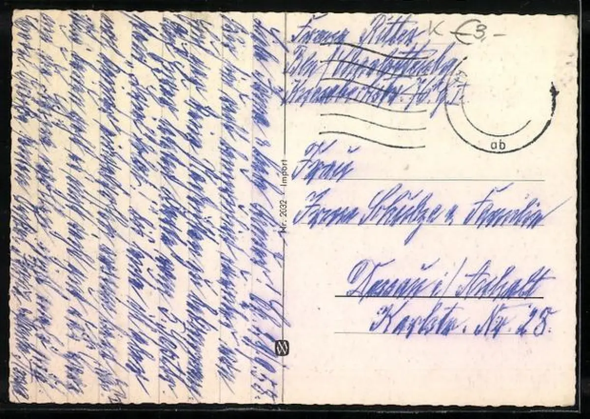 alte Ansichtskarte, gelaufen, Briefmarke entfernt, Stempelspur, guter Zustand