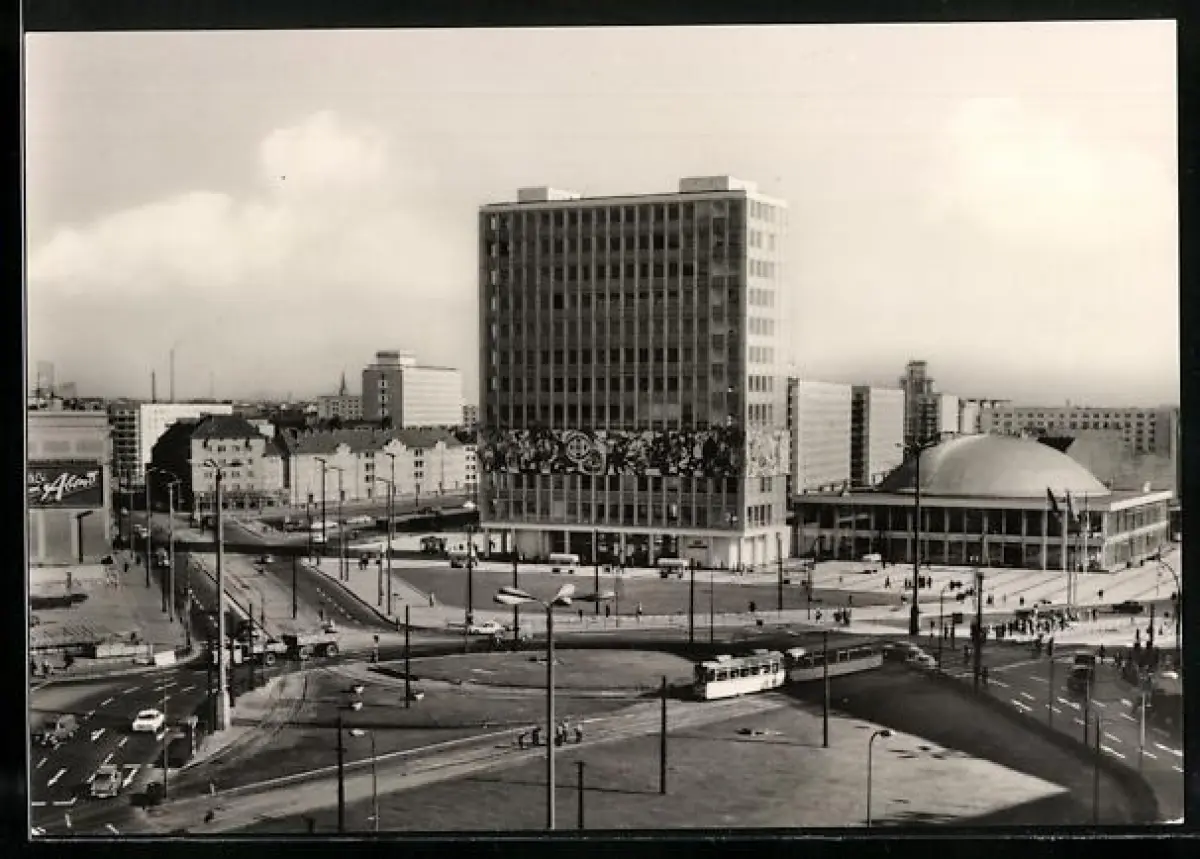 AK Berlin, Haus des Lehrers am Alexanderplatz mit Strassenbahn