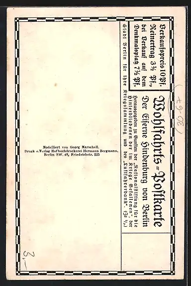 AK Berlin, Hindenburg-Denkmal, Modell, Wohlfahrts-Postkarte der Stadt
