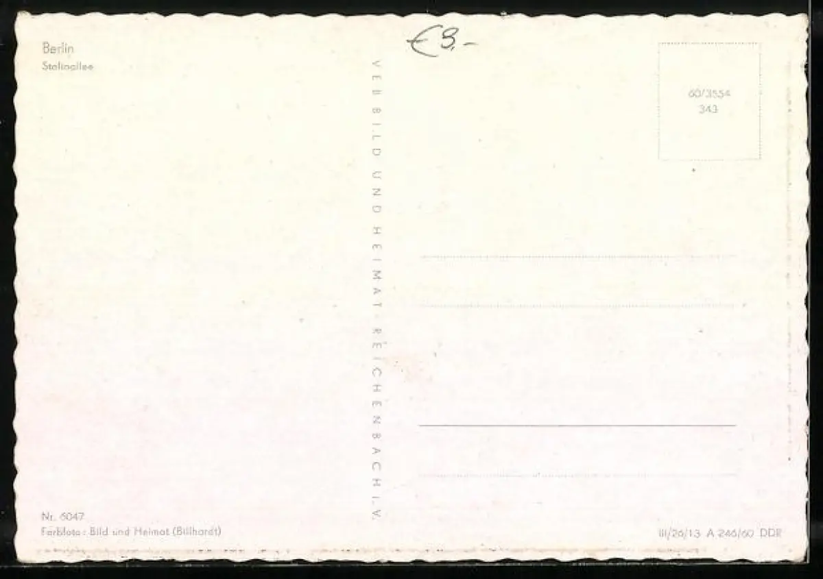 Personenbezogene Daten auf der Rückseite der Karte wurden durch blauen Textmarker unkenntlich gemacht. Die blauen Stellen sind auf die Vorderseite durchgeweicht und wirken sich negativ auf das Postkartenfoto aus