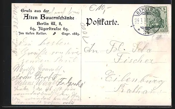 AK Berlin, Innenansicht des Gasthauses Alte Bauernschänke in der Jägerstrasse 69