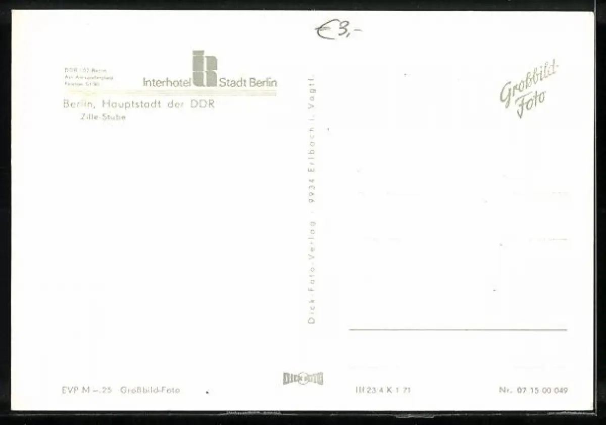 AK Berlin, Interhotel, Zille-Stube, Innenansicht