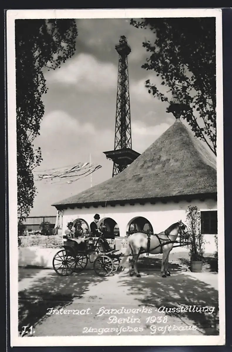 AK Berlin, Internat. Handwerks-Ausstellung 1938, Ungarisches Gasthaus, Funkturm
