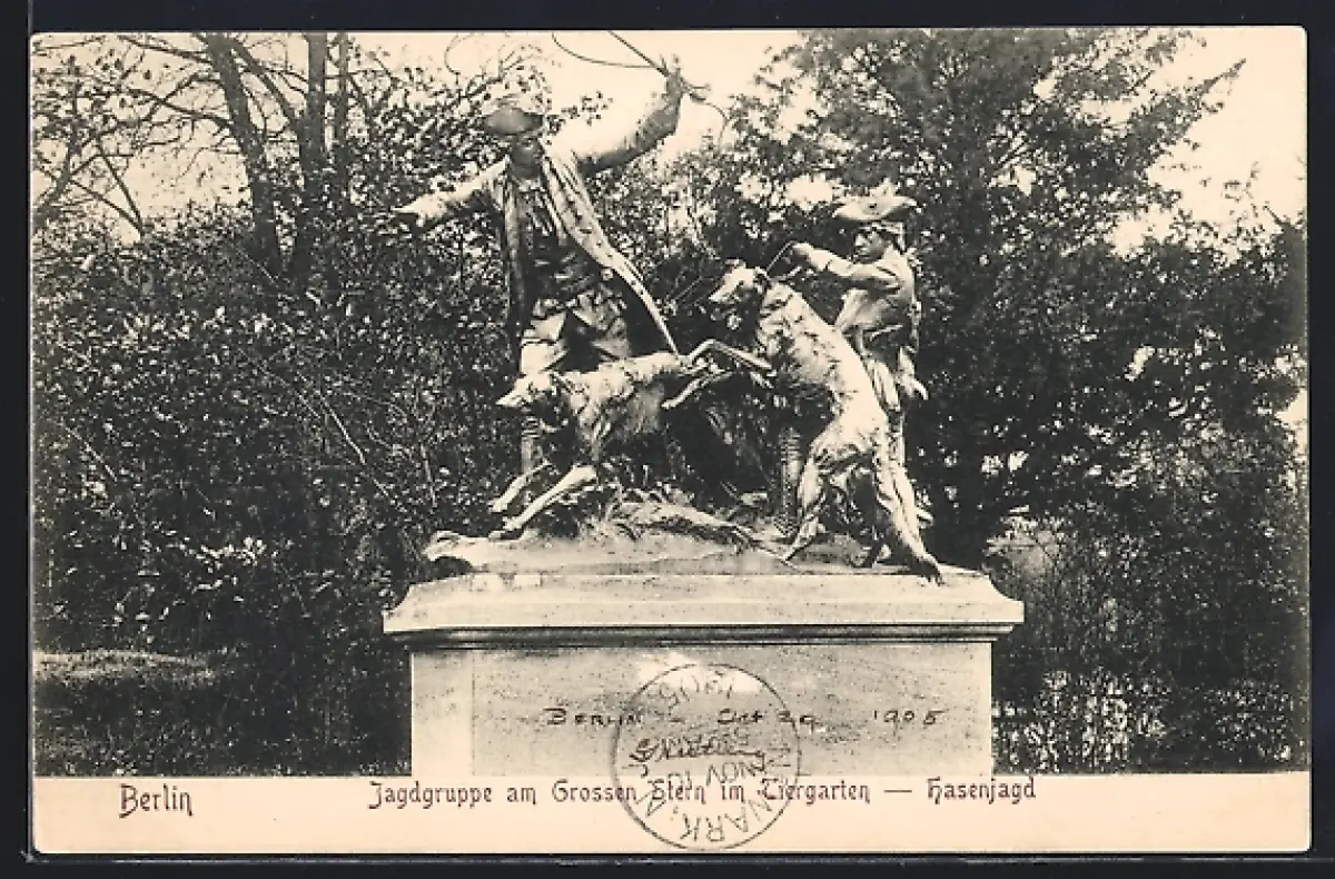 AK Berlin, Jagdgruppe am Grossen Stern im Tiergarten - Hasenjagd