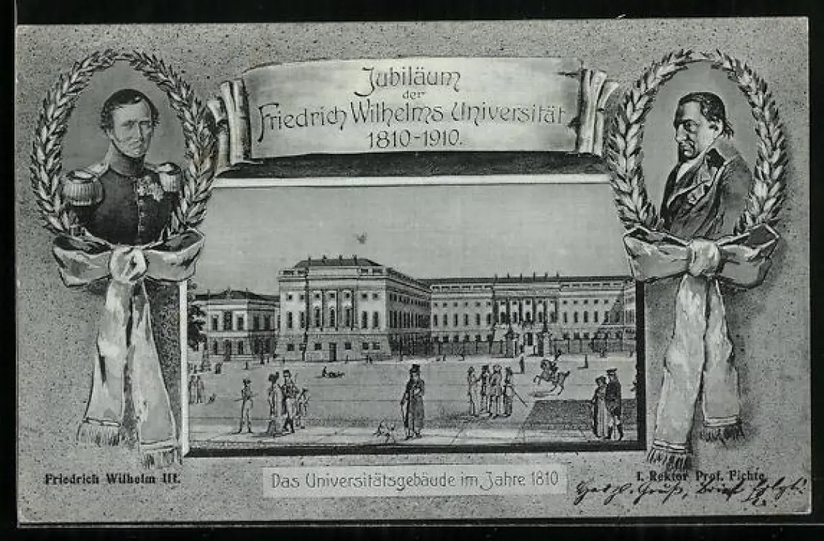 AK Berlin, Jubiläum Friedrich Wilhelms Universität, Universitätsgebäude 1810, Friedrich Wilhelm 3., Rektor Fichte