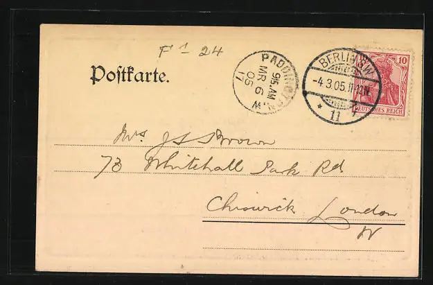 alte Ansichtskarte, gelaufen 1905, guter Zustand