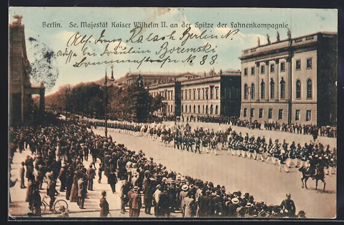AK Berlin, Kaiser Wilhelm II. Spitze der Fahnenkompanie, Unter den Linden