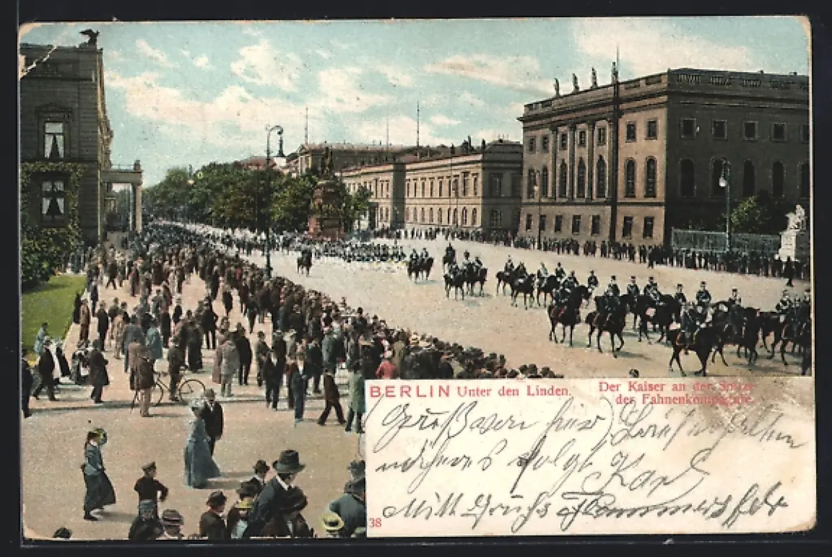 AK Berlin, Kaiser an der Spitze der Fahnenkompagnie, Unter den Linden