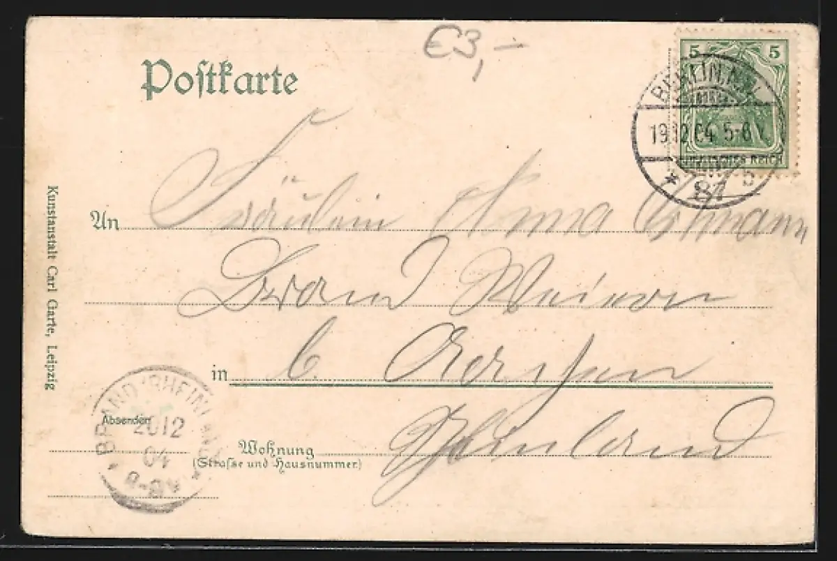 alte Ansichtskarte, gelaufen 1904, Eckknick oben links, guter Zustand