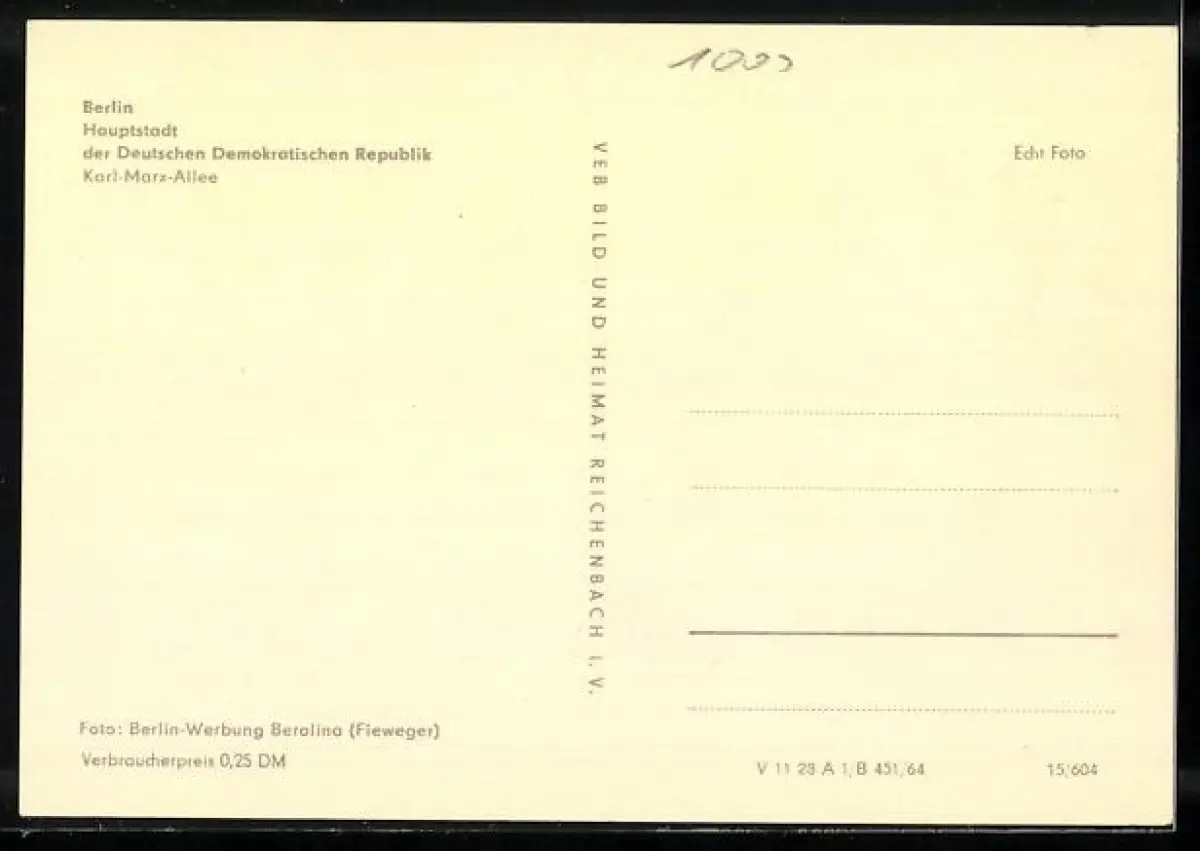 Personenbezogene Daten auf der Rückseite der Karte wurden durch blauen Textmarker unkenntlich gemacht. Die blauen Stellen sind auf die Vorderseite durchgeweicht und wirken sich negativ auf das Postkartenfoto aus