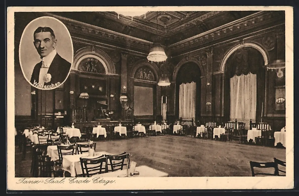 AK Berlin, Königstadt-Kasino, Holzmarktstrasse 72, Ansicht des Tanzsaals, Portrait Walterchen der Seelentröster