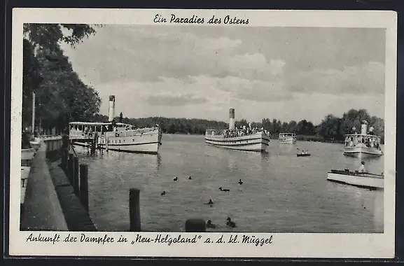AK Berlin-Köpenick, Ankunft der Dampfer in Neu-Helgoland a. d. kl. Müggel