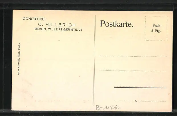 AK Berlin, Konditorei C. Hillbrich in der Leipzigerstr. 24