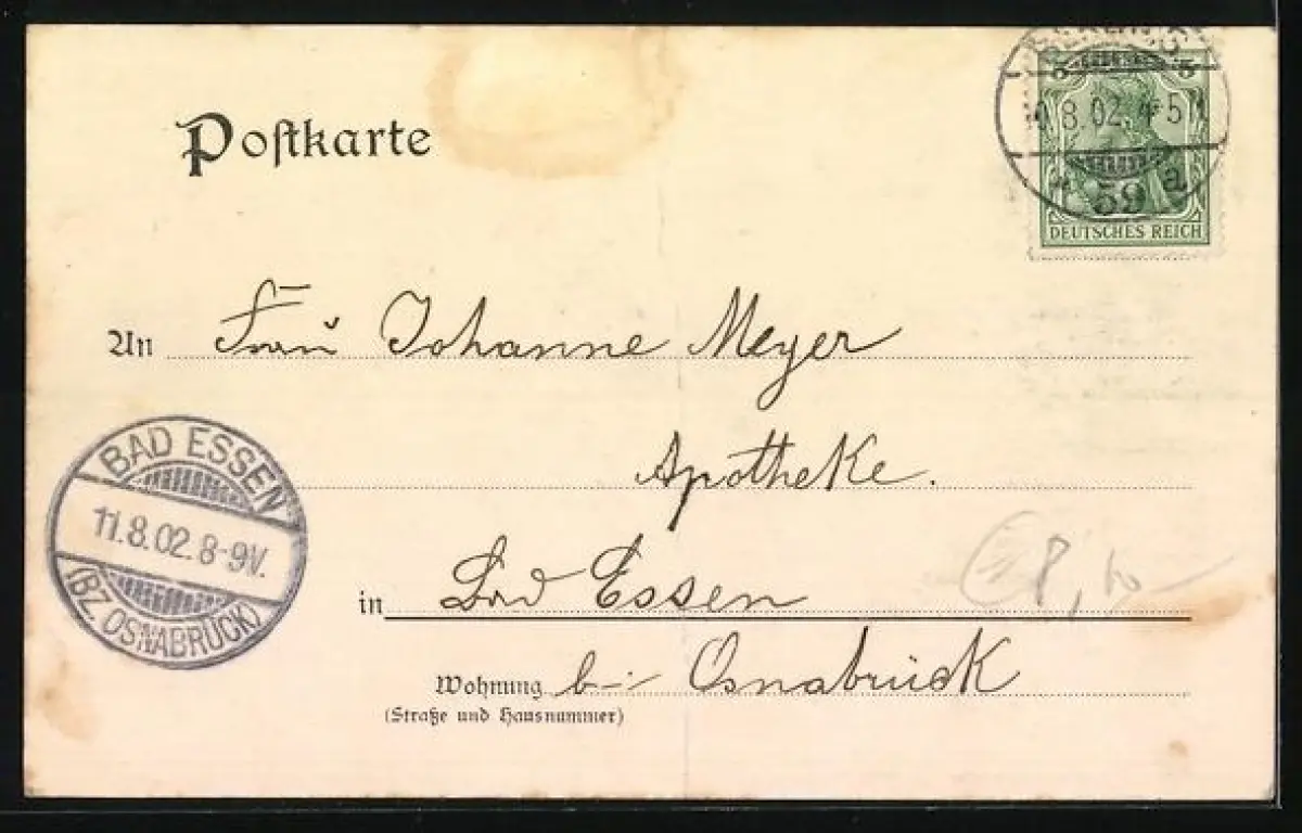 alte Ansichtskarte, gelaufen 1902, durchgehende Bugspur mittig, sonst guter Zustand