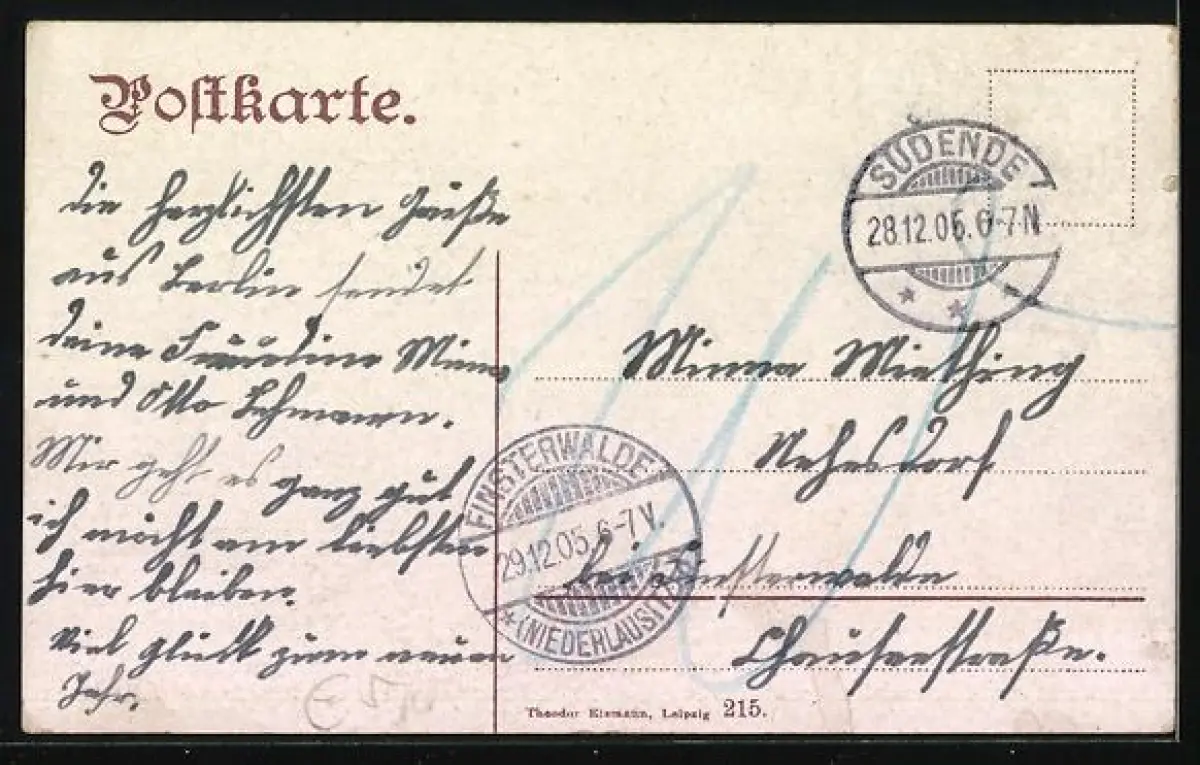 alte Ansichtskarte, gelaufen 1905, Abriebspuren Ecken unten, Stempelspur, guter Zustand