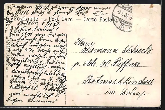 alte Ansichtskarte, gelaufen 1907, Briefmarke entfernt, guter Zustand
