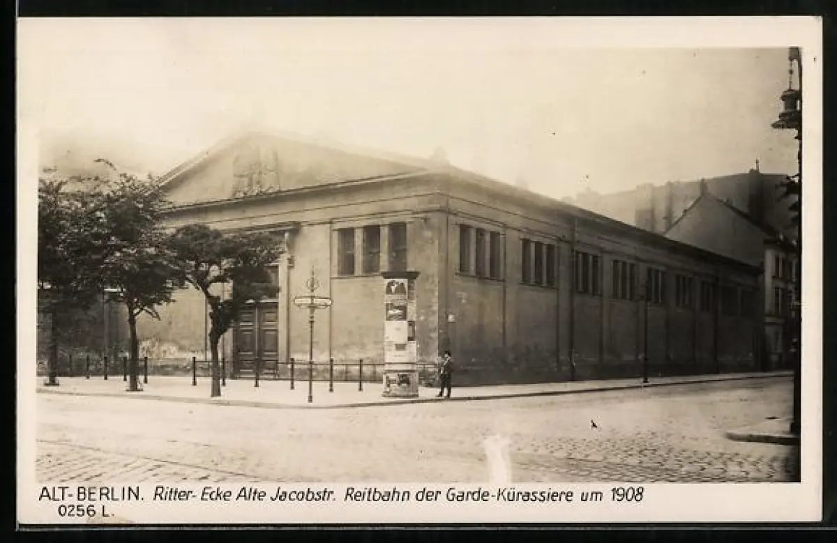 AK Berlin-Kreuzberg, Ritterstrasse Ecke Alte Jacobstrasse, Reitbahn der Garde-Kürassiere