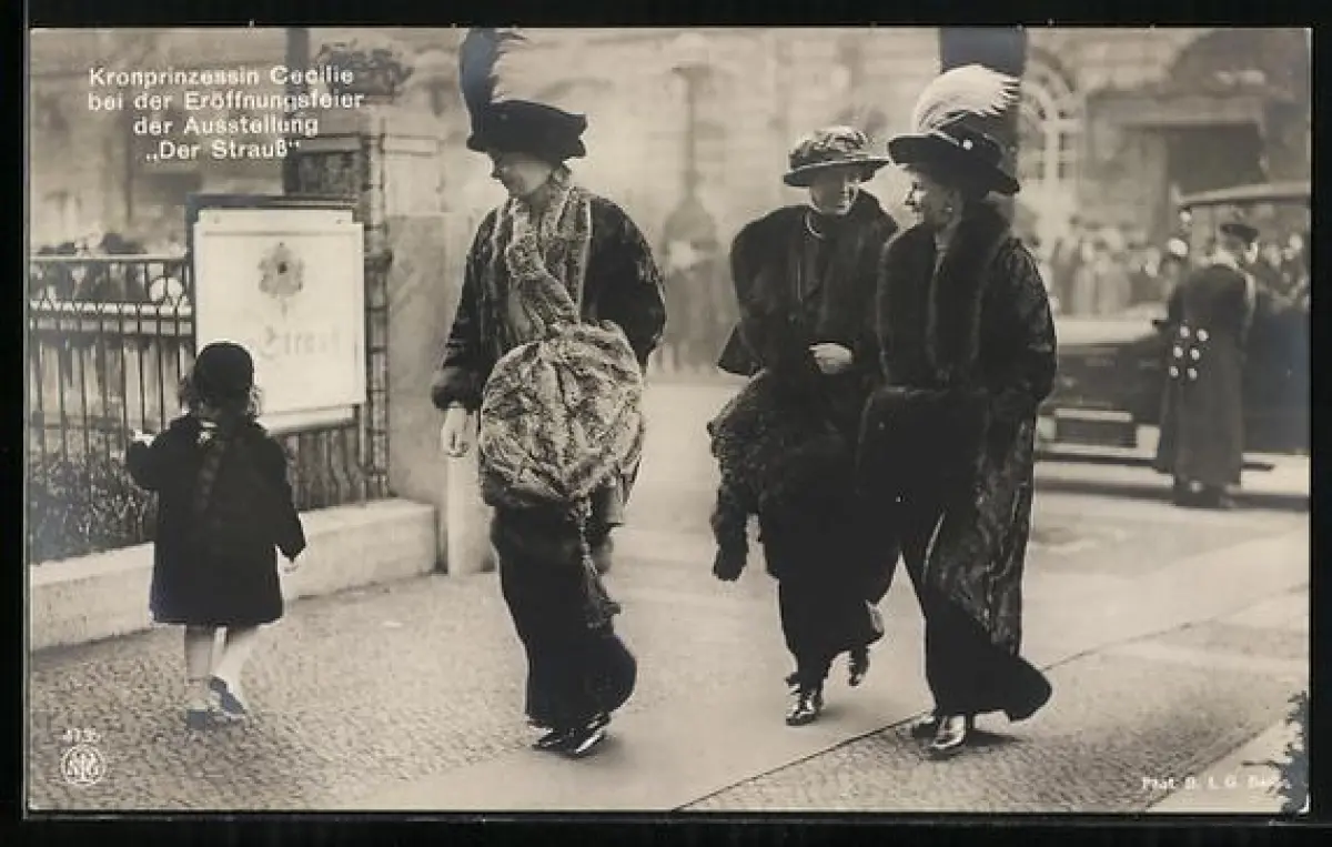 AK Berlin, Kronprinzessin Cecilie, die Gattin von Kronprinz Wilhelm bei der Eröffnungsfeier der Ausstellung Der Strauss