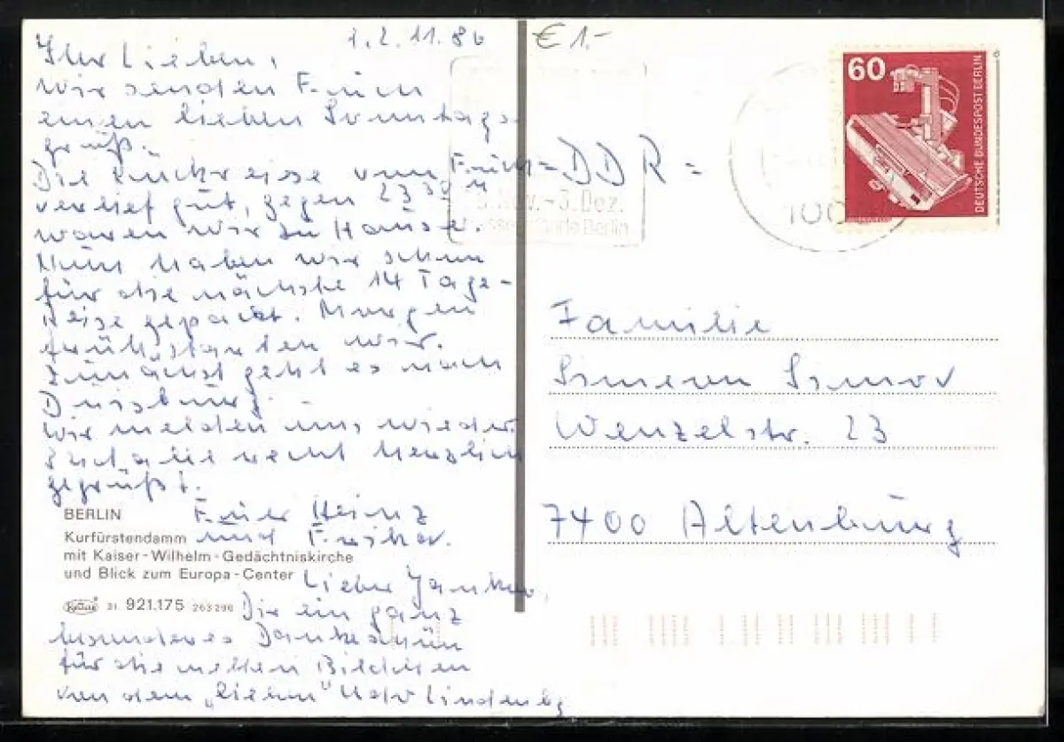 alte Ansichtskarte, gelaufen 1986, guter Zustand