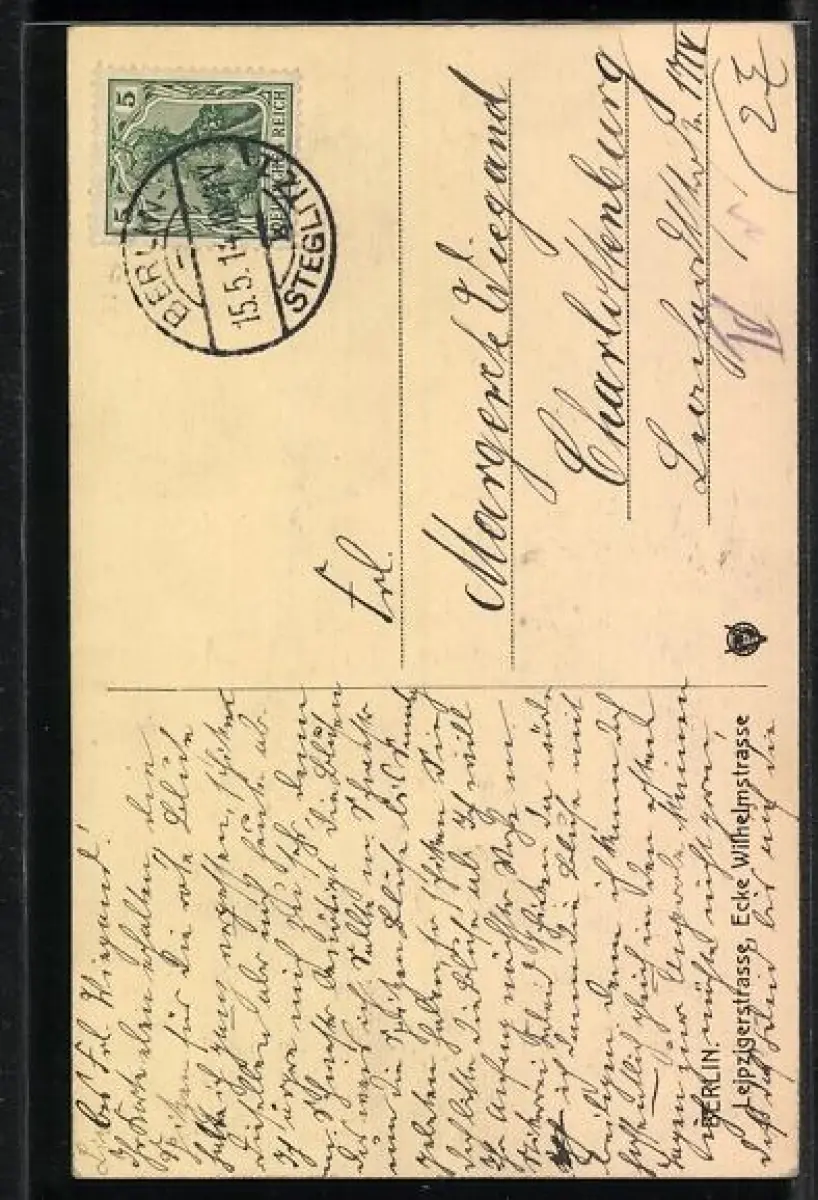 AK Berlin, Leipzigerstrasse Ecke Wilhelmstrasse mit Strassenbahn