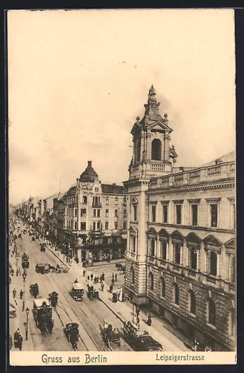 AK Berlin, Leipzigerstrasse mit Verkehr aus der Vogelschau