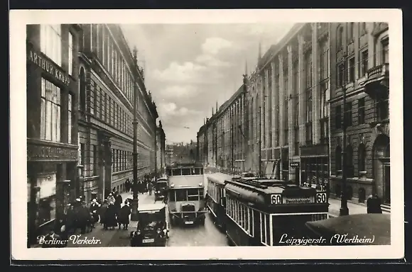 AK Berlin, Leipzigerstrasse mit berliner Verkehr, Autos u. Strassenbahn