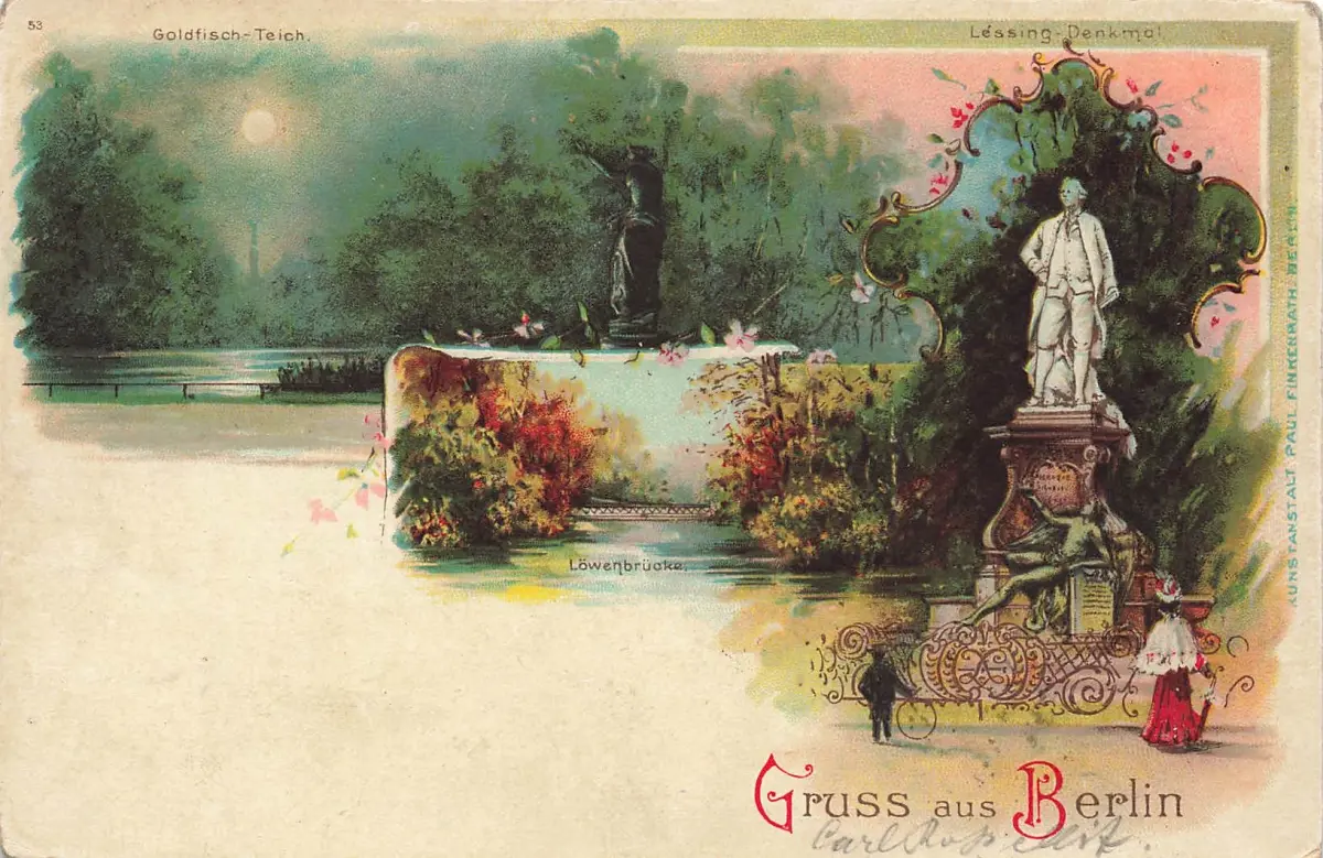 AK Berlin Lessing Denkmal Löwenbrücke Goldfisch Teich Berlin 1900 Postkarte