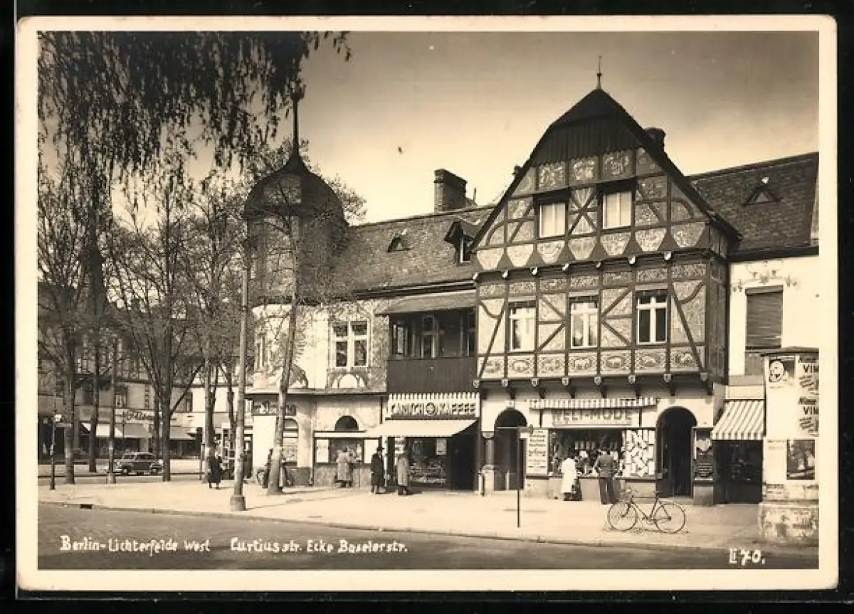 AK Berlin-Lichterfelde, Curtiusstrasse Ecke Baselerstrasse mit Geschäften