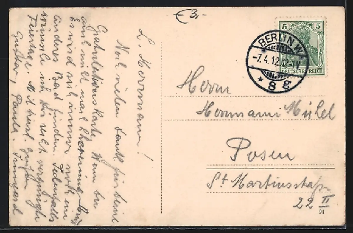 alte Ansichtskarte, gelaufen 1912, guter Zustand