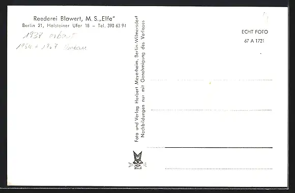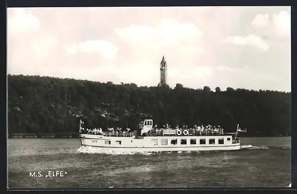 AK Berlin, MS Elfe der Reederei Blawert auf dem Wasser