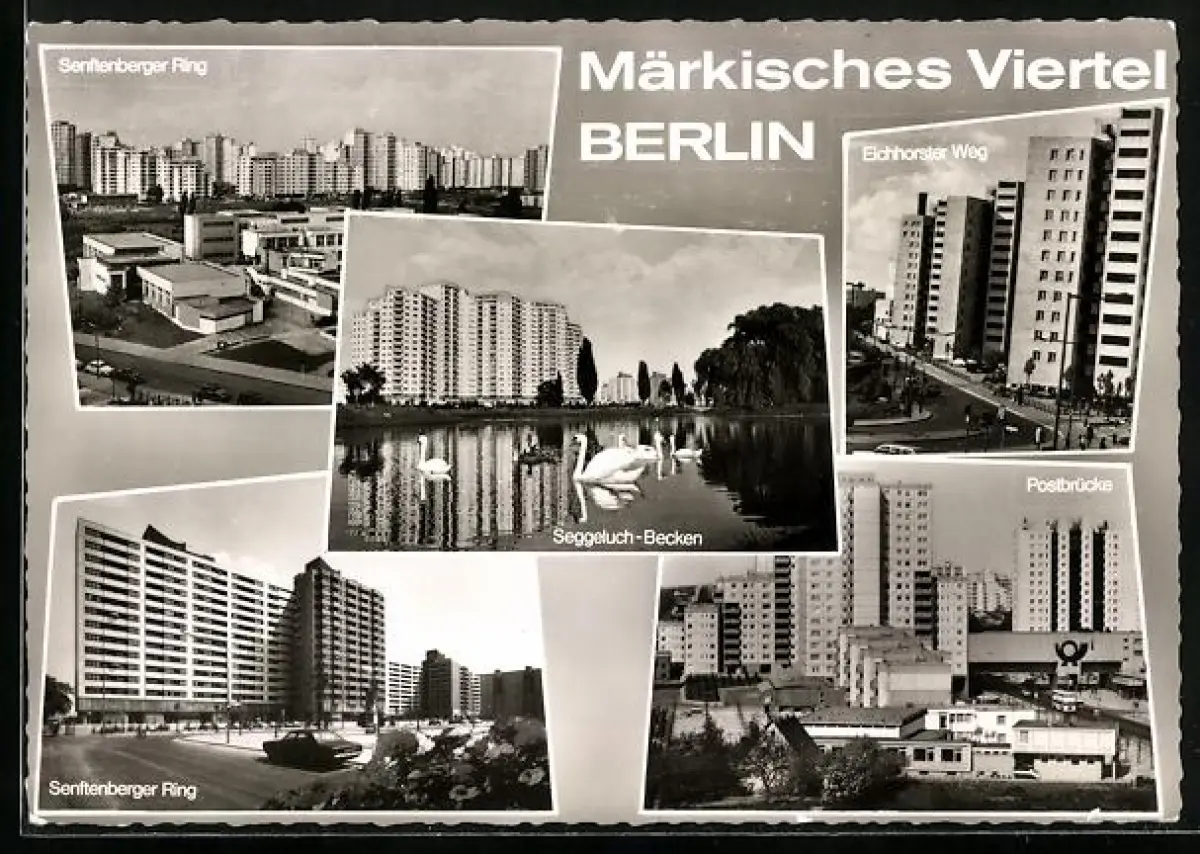 AK Berlin, Märkisches Viertel, Senftenberger Ring, Postbrücke, Eichhorster Weg