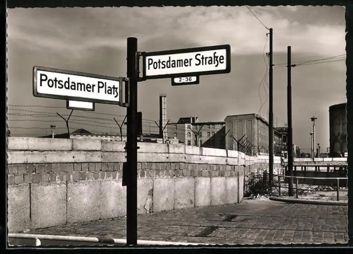 AK Berlin, Mauer am Potsdamer Platz mit Strassenschild Potsdamer Strasse