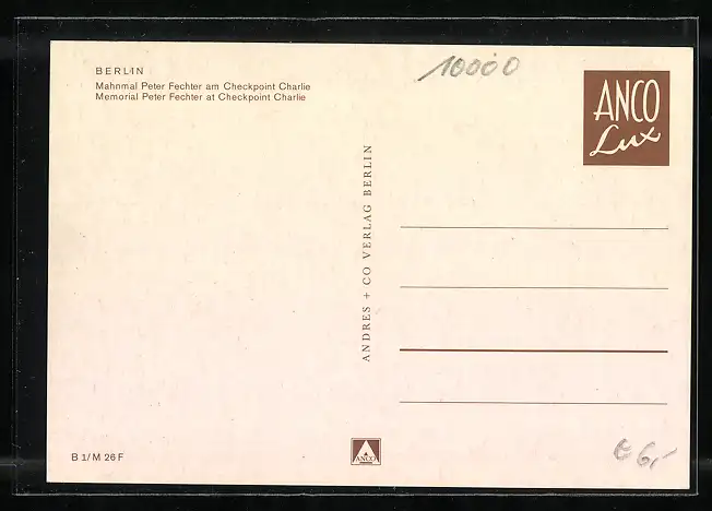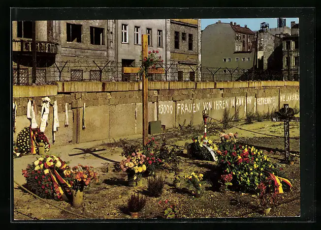 AK Berlin, Mauer mit dem Mahnmal Peter Fechter am Checkpoint Charlie