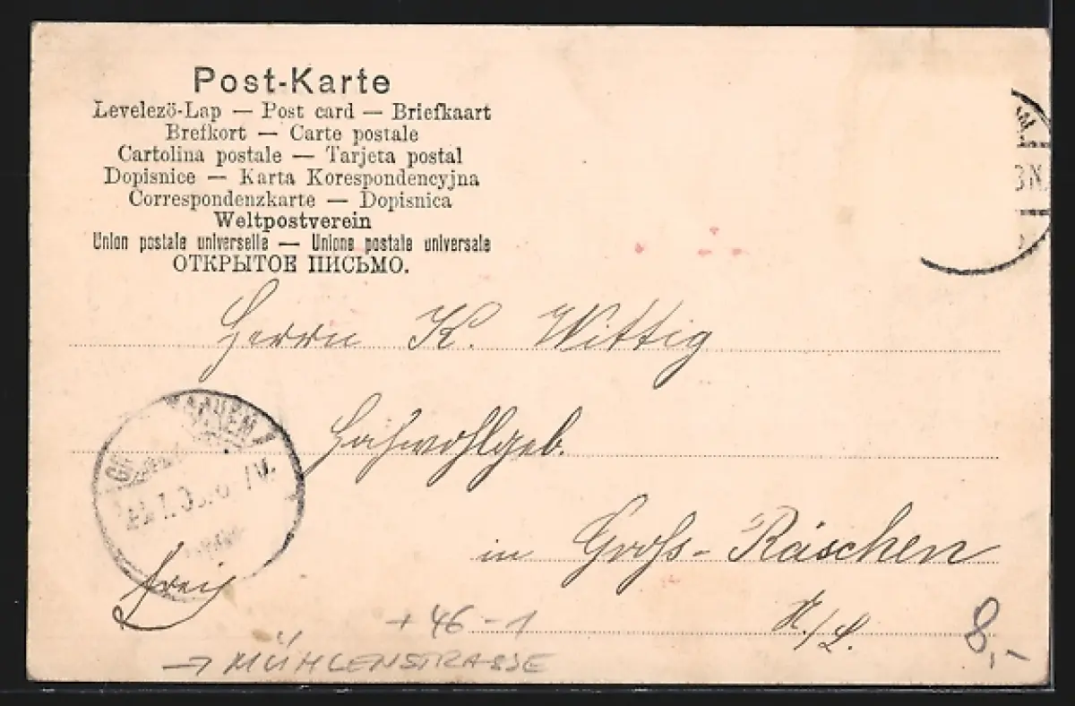 alte Ansichtskarte, gelaufen, Briefmarke entfernt, guter Zustand
