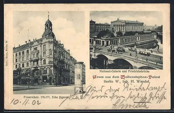 AK Berlin, Nationalgalerie und Friedrichsbrücke mit Strassenbahn, Friedrichsstr. 176 /177 mit Litfasssäule