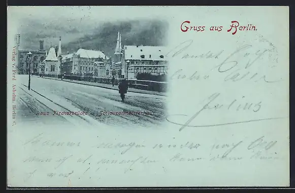 AK Berlin, Neue Fischerbrücke und Schleusenmeisterhaus im Winter