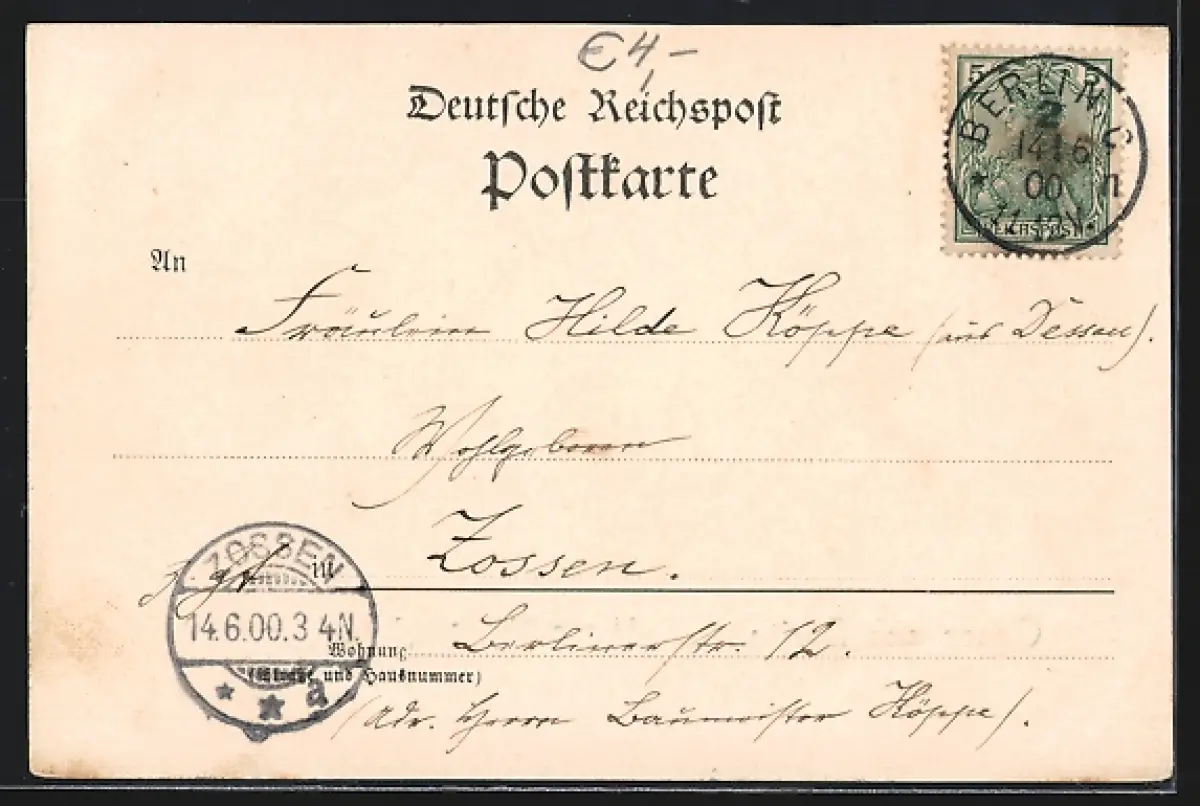 alte Ansichtskarte, gelaufen 1900, guter Zustand