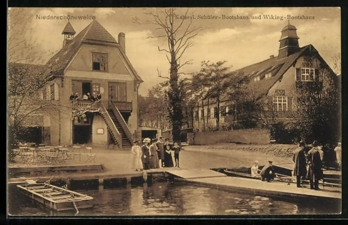 AK Berlin-Niederschöneweide, Kaiserl. Schüler-Bootshaus und Wiking-Bootshaus