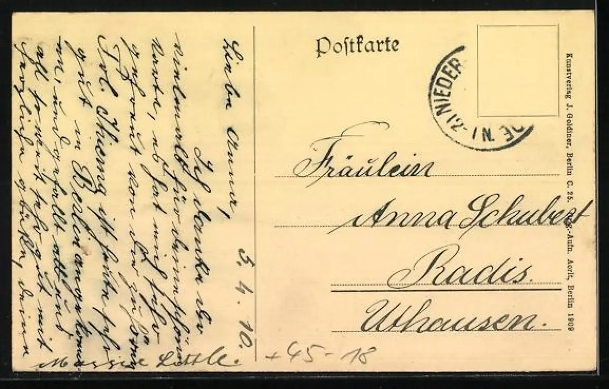 alte Ansichtskarte, gelaufen, Briefmarke entfernt, guter Zustand