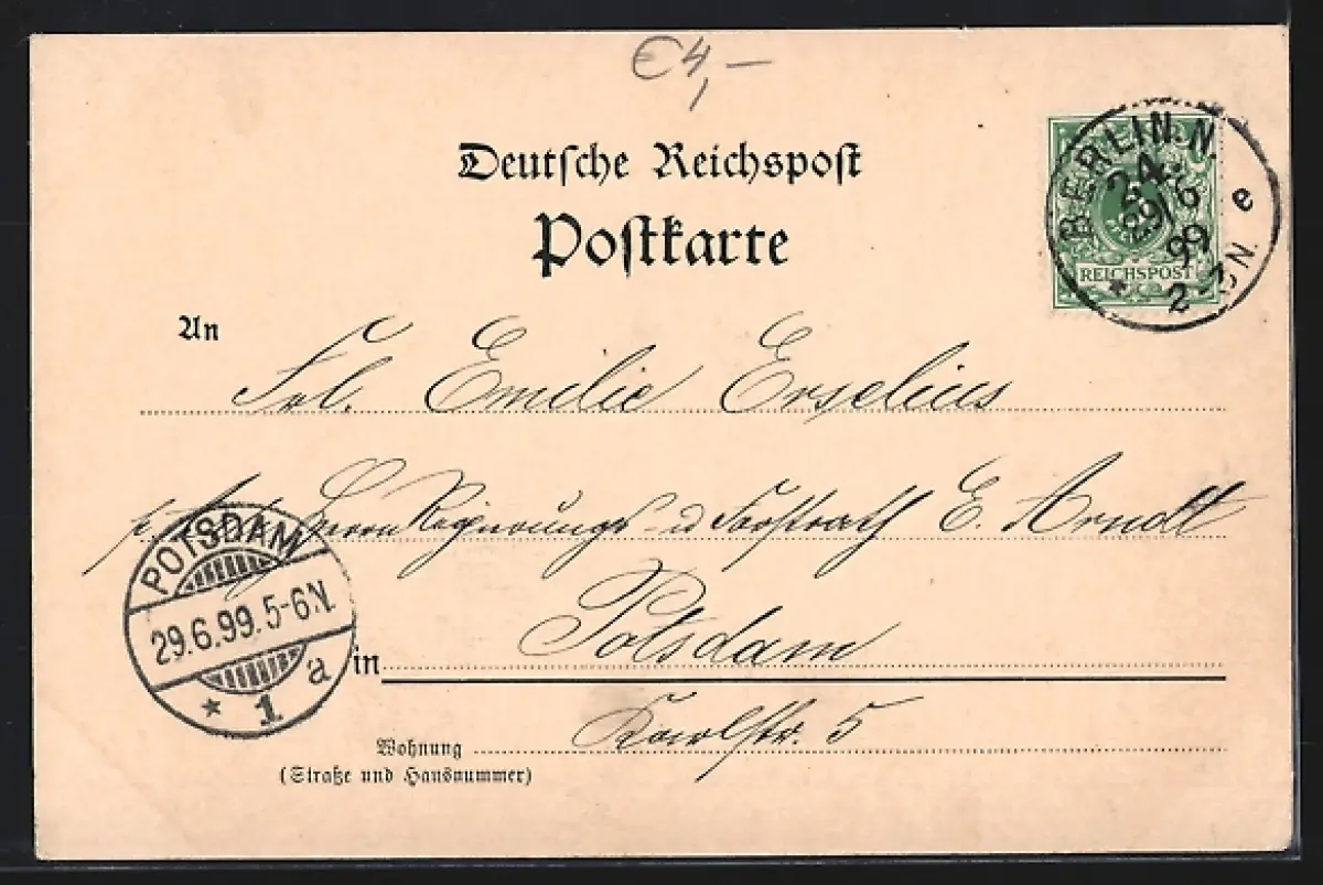 gelaufen 1899, Eckknick u. kl. Einriss unten li., guter Zustand