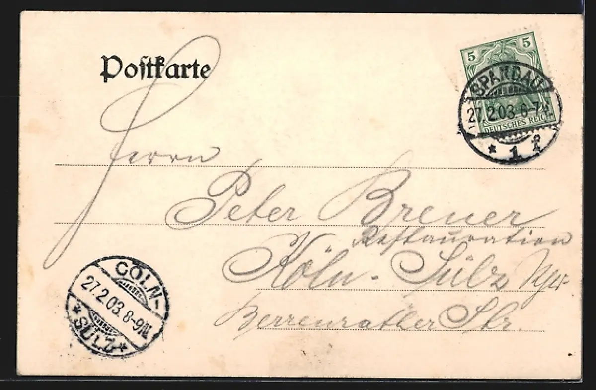 alte Ansichtskarte, gelaufen 1903, guter Zustand