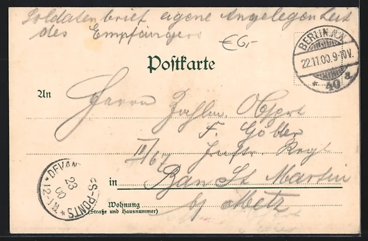 alte Ansichtskarte, gelaufen 1900, guter Zustand