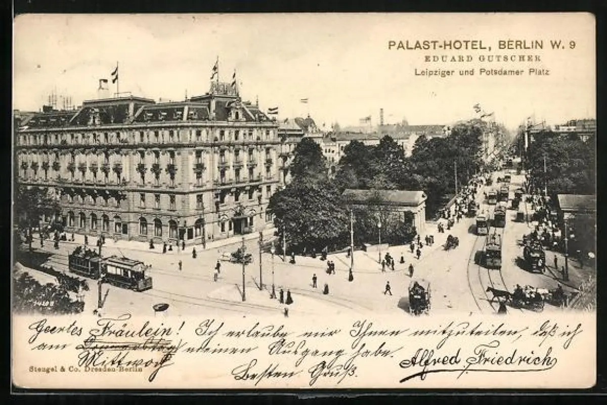 AK Berlin, Palast-Hotel, Potsdamer Platz, Strassenbahn