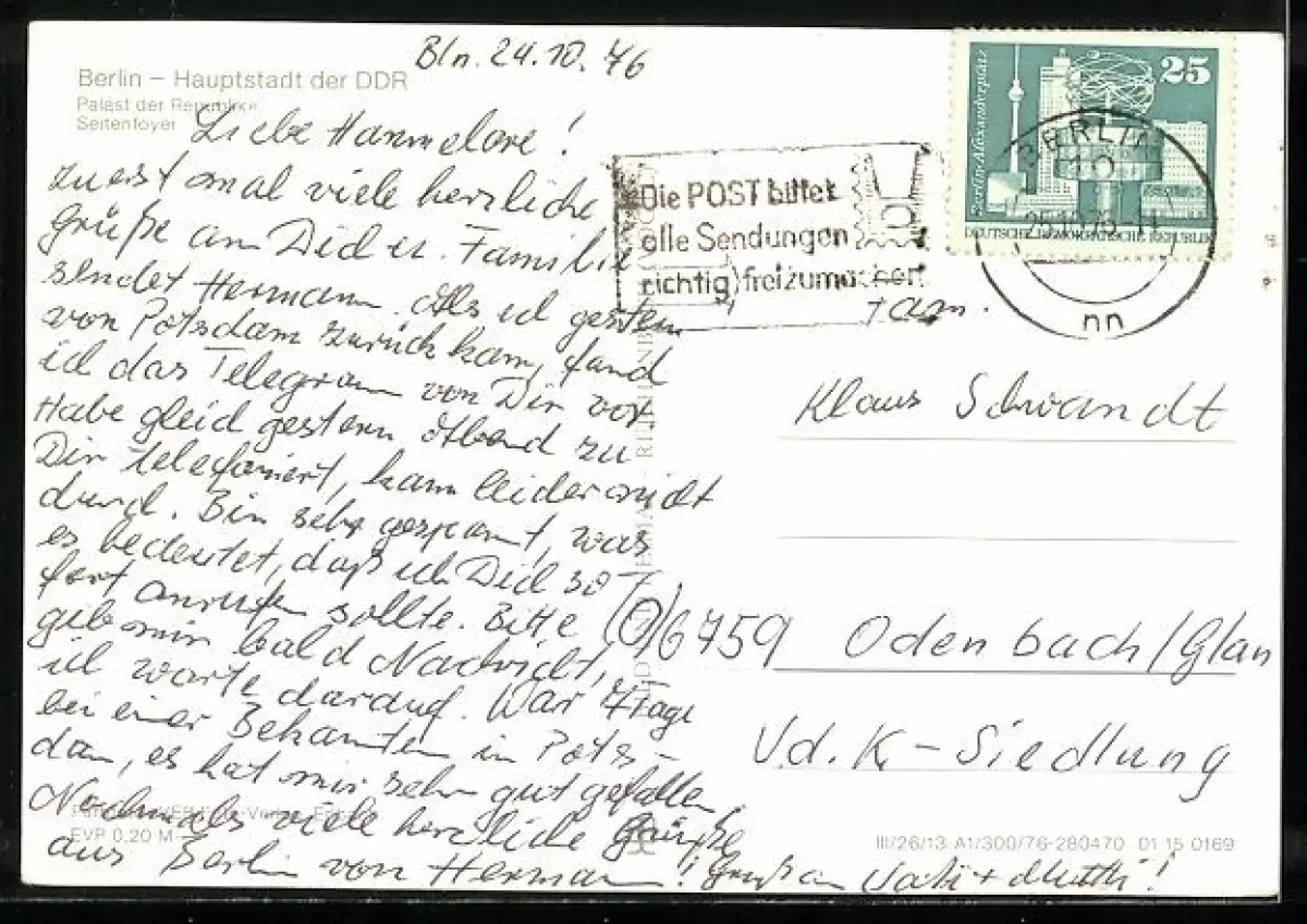 alte Ansichtskarte, gelaufen 1976, Eckknicke re., guter Zustand