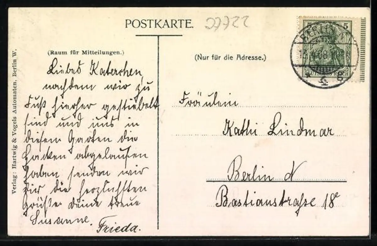 alte Ansichtskarte, gelaufen 1908, guter Zustand